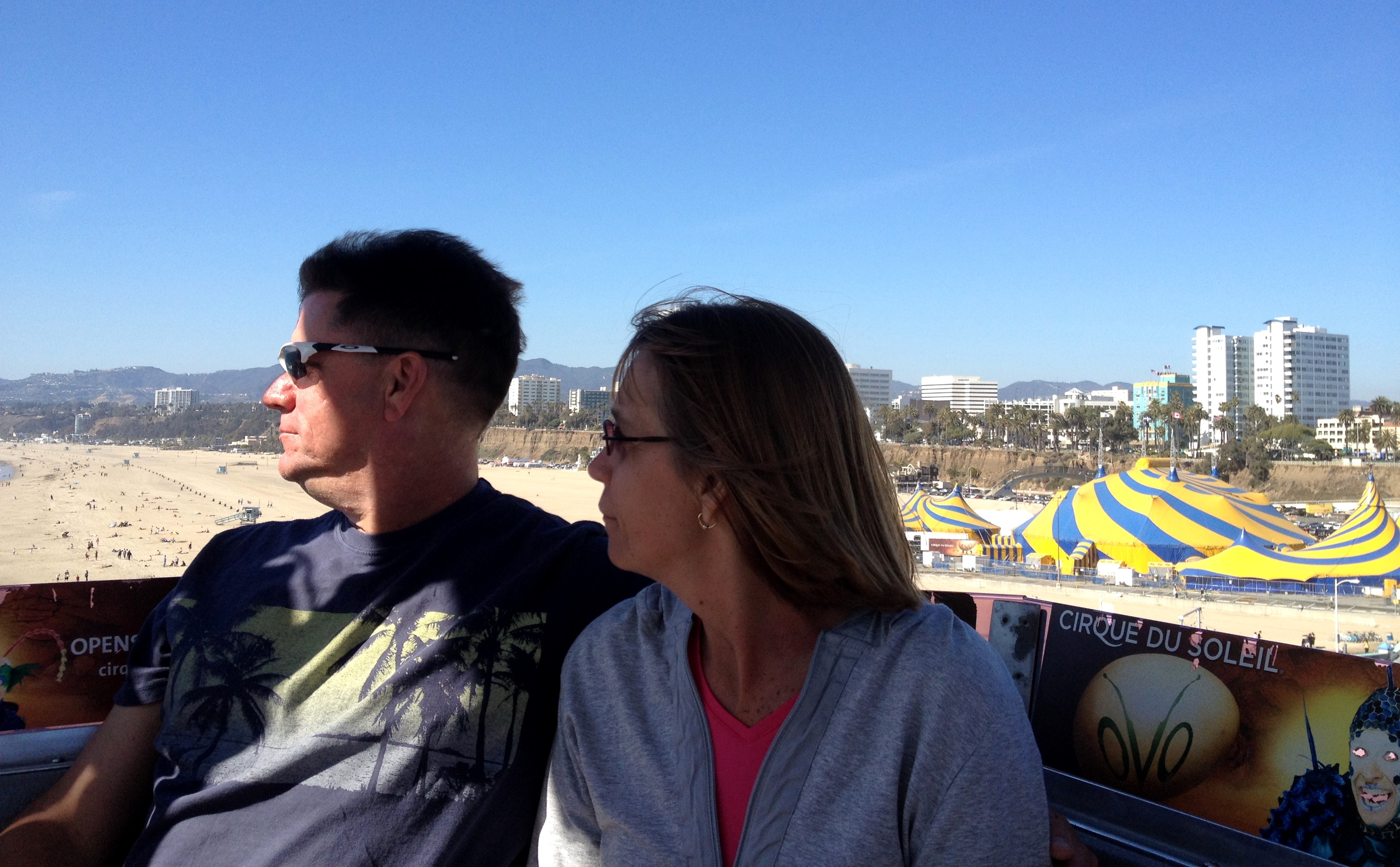 I mentioned yesterday that I finally got to go on the Santa Monica Ferris Wheel. It took a bit of arm twisting, but Brad, Jeff, and even Robin went up with me.