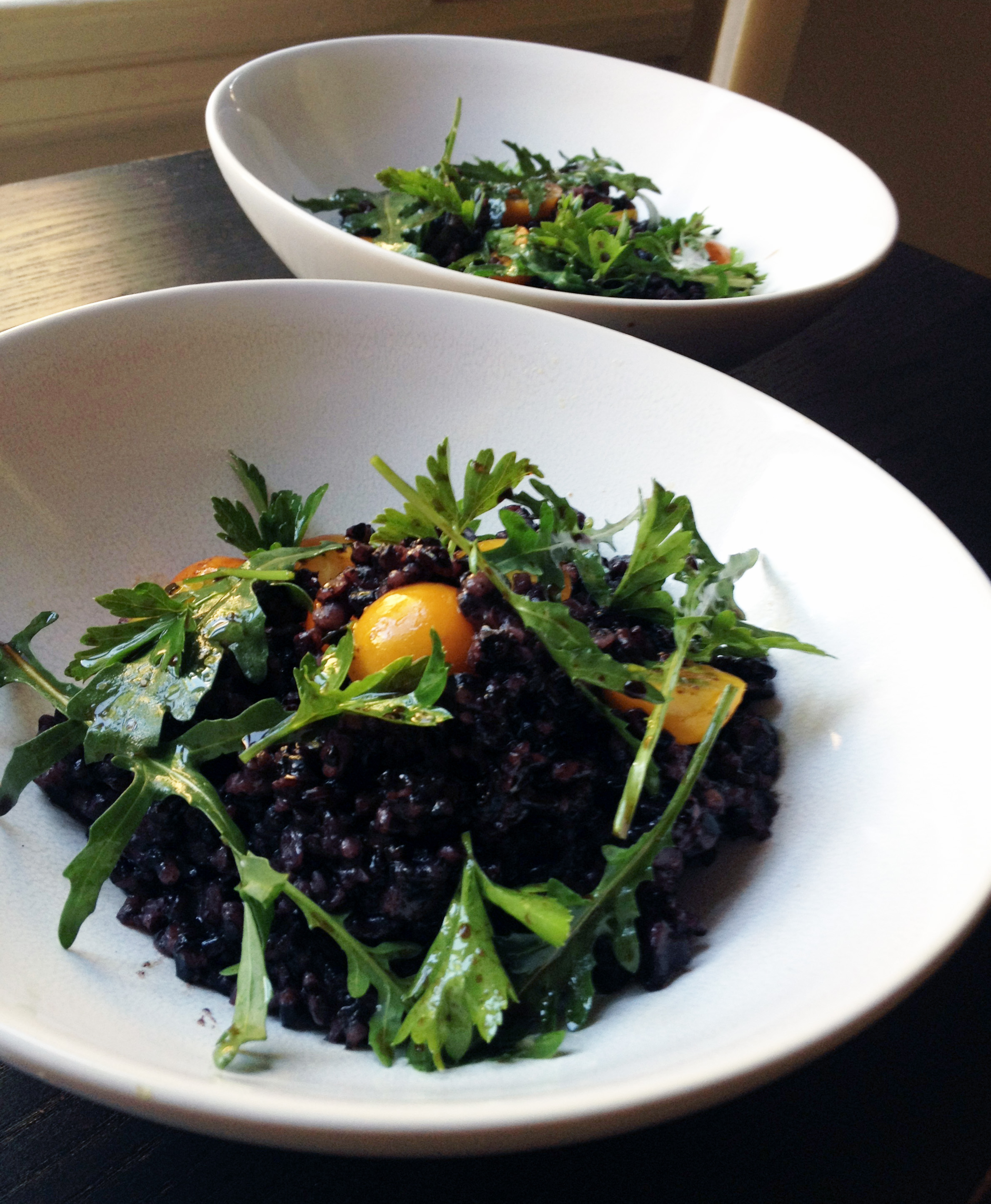 Brad made this for lunch Wednesday after the market – Forbidden Rice with Arugula and Cherry Tomatoes. Amazing.