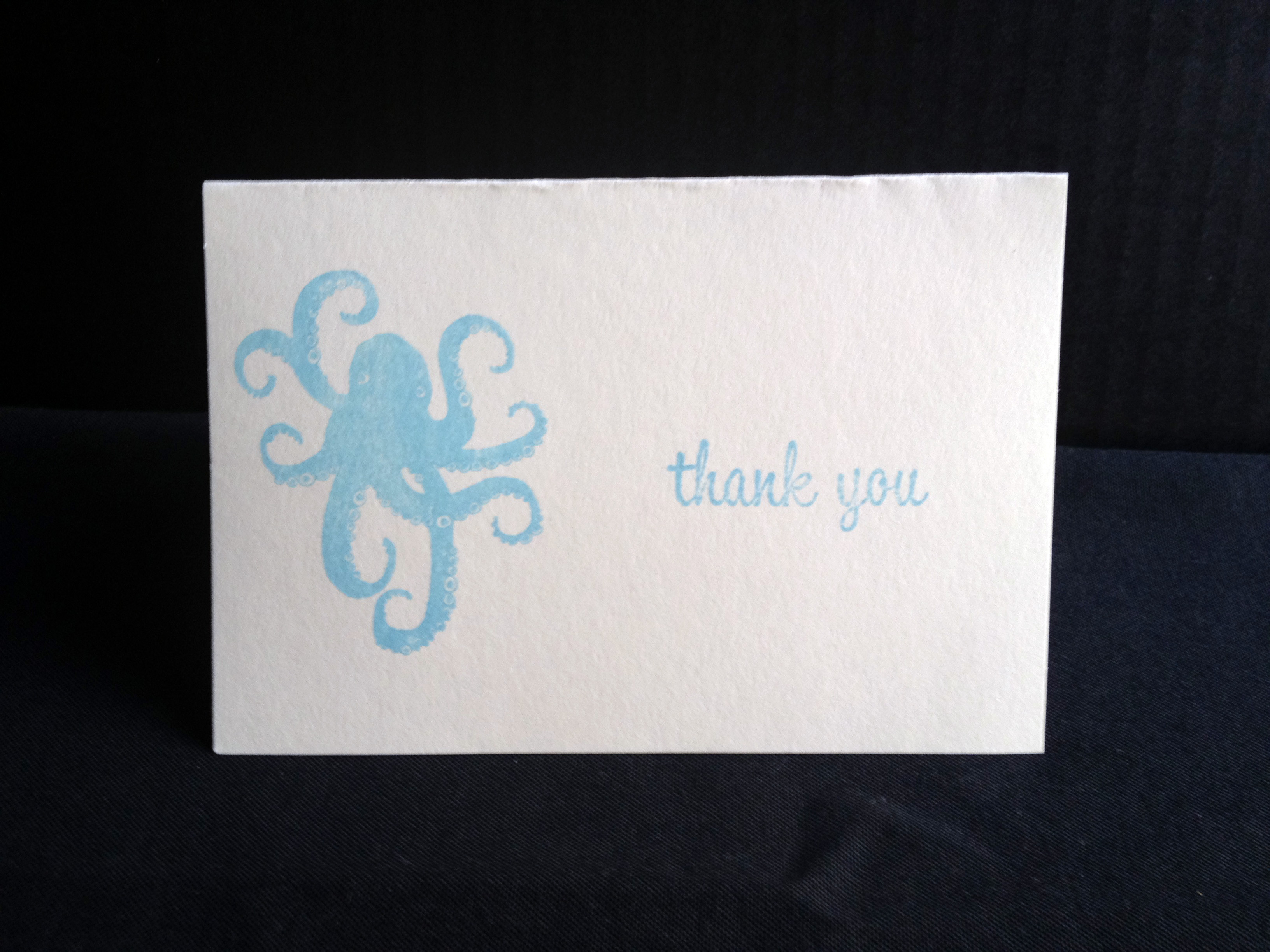 So I went out and bought a pulpo (octopus) stamp, a “Thank You” stamp, and a blue stamp pad from the coolest store maybe ever – PaperSource. Because I could have bought a couple of cute thank you cards, but now I have new thank you cards and I have a new pulpo stamp.