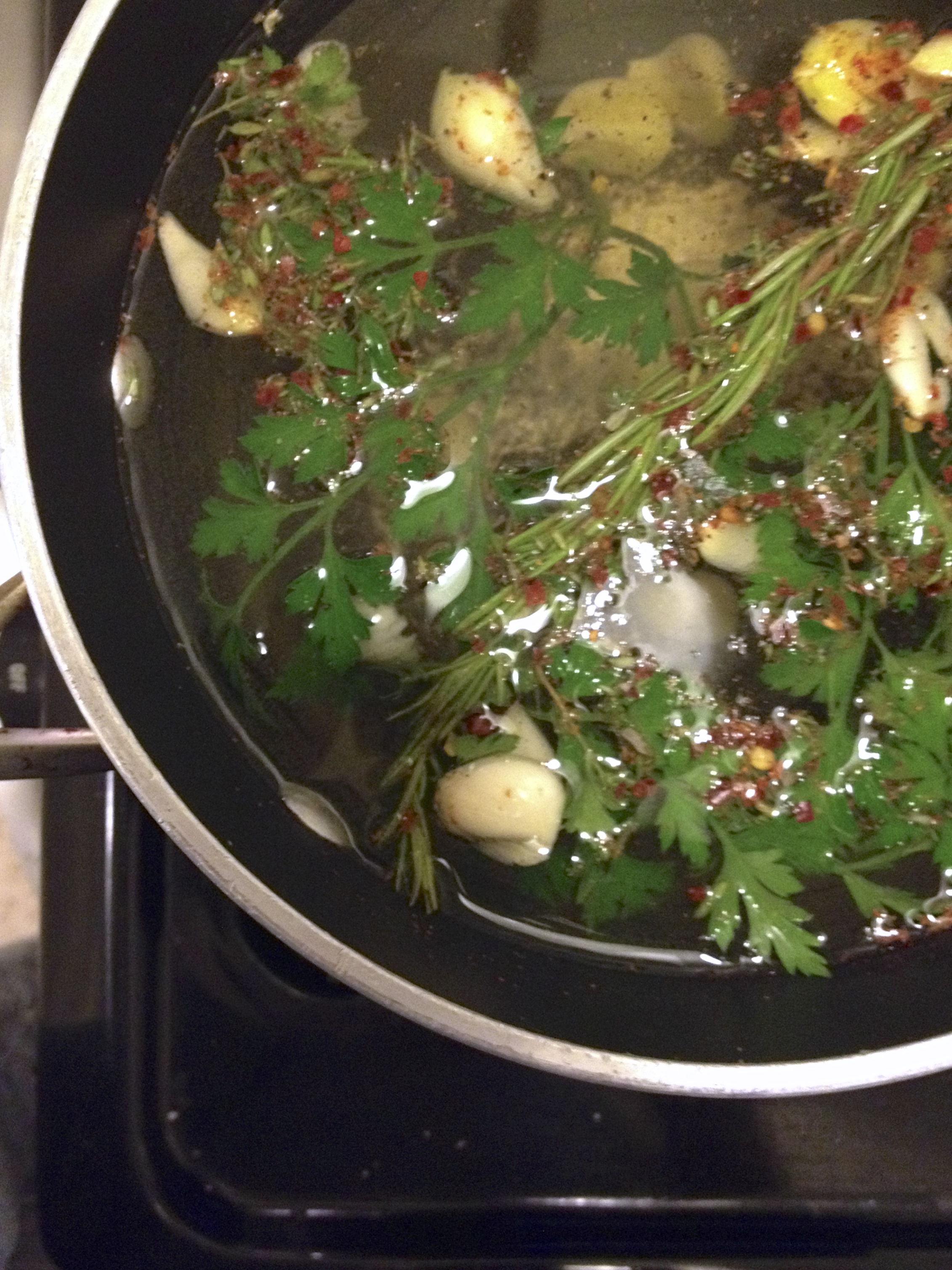 It was pretty simple to make, thank goodness. Attempting a Julia Child recipe while sick and exhausted has the potential for being disastrous. I will warn you that this is not a creamy, hearty soup. It is almost more of a broth, which is why I threw in some spigarello (broccoli greens) and parmesan to spice it up a little.
